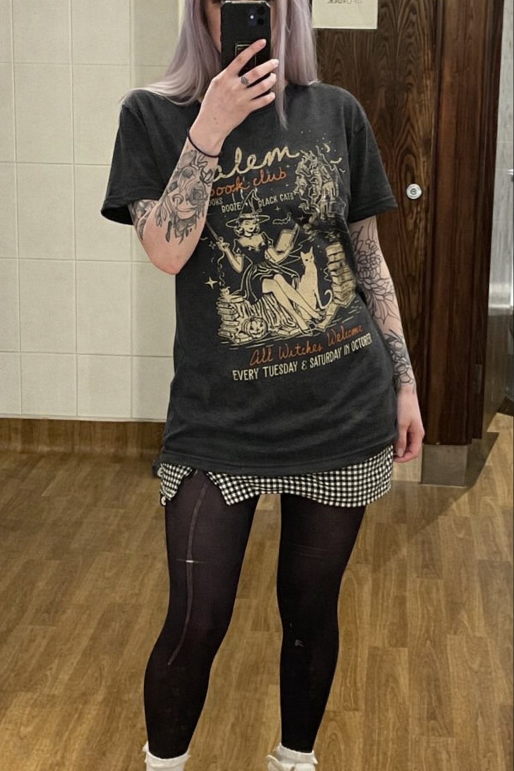 camiseta witchcore feminina, camiseta mística feminina, camiseta Salem Book Club, camiseta de bruxa com gato, camiseta literária feminina, camiseta retrô mística, camiseta estética witch, camiseta algodão premium feminina